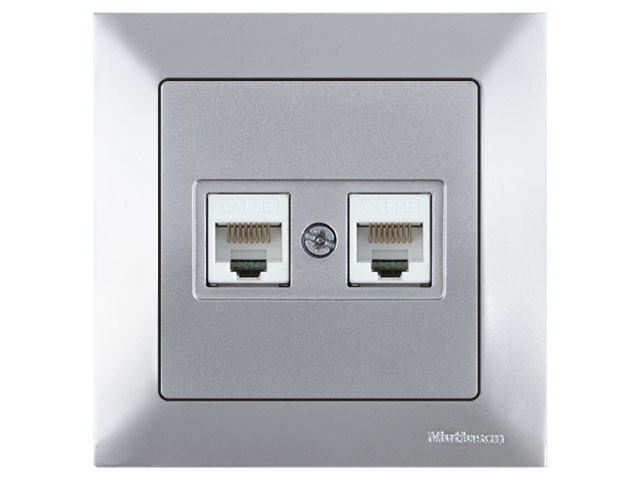 Розетка компьютерная 2xRJ45 (Cat5e, скрытая) серебро, DARIA, MUTLUSAN