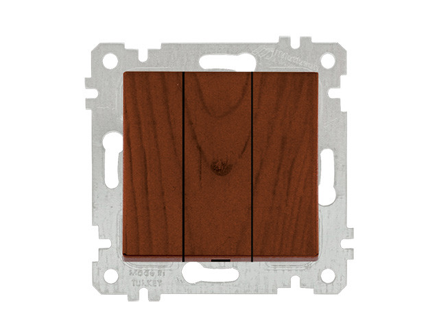 Выключатель 3-клав. (скрытый, без рамки, пруж. зажим) орех, RITA, MUTLUSAN